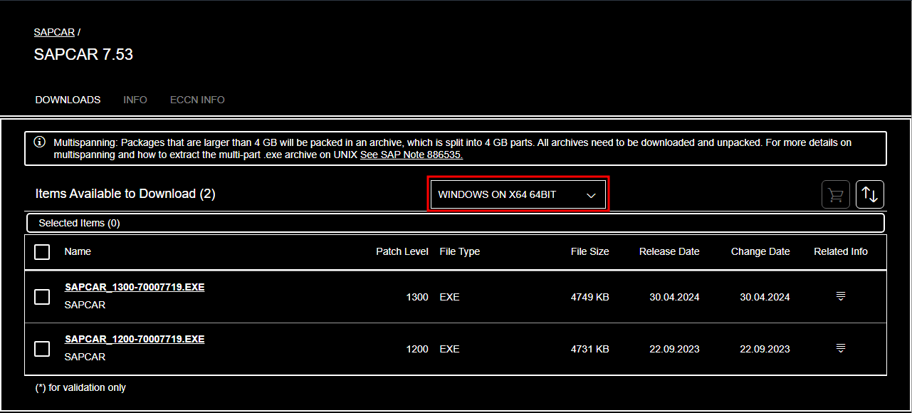 SAPCAR / SAPCAR 7.53(або іншу доступну версію), опісля чого оберіть ОС, на якій ви розархівовуватимете файли SAP HANA Platform